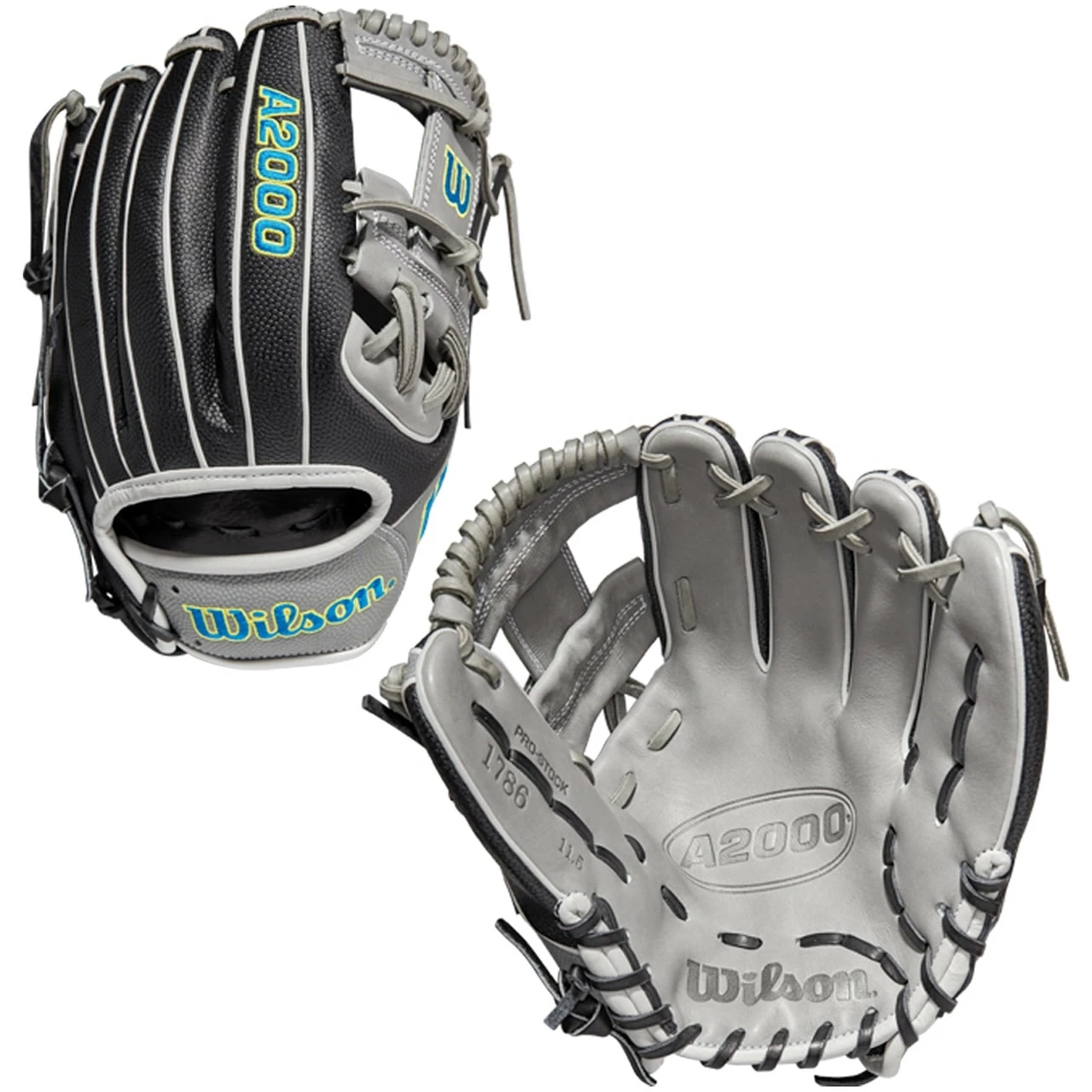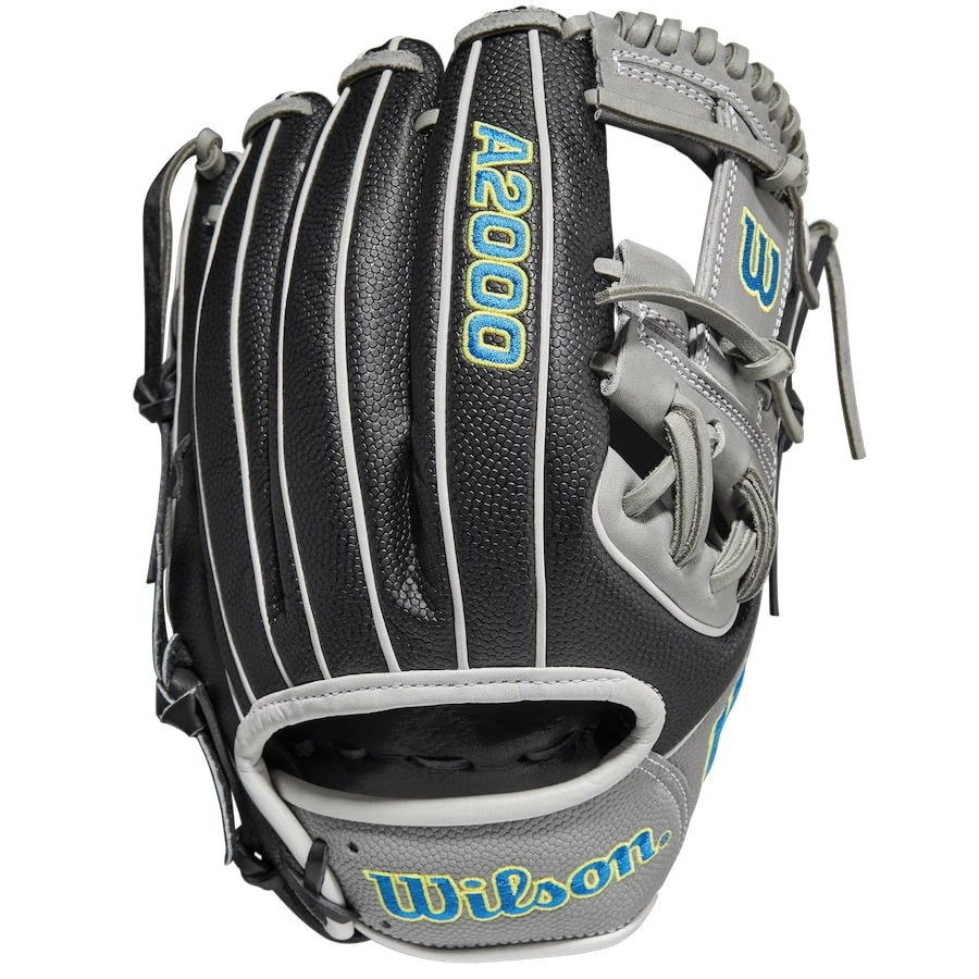 Ensure everyone takes notice of your infield play with the fresh 2022 A2000® 1786SS. A favorite among middle infielders, this 11.5” pattern features Grey Pro Stock® leather, a classic H-Web and a shallow pocket design to allow for quick transfers at second, third or shortstop. Black SuperSkin™ reduces glove weight while improving durability and moisture resistance, and Tropical Blue Bold Logos with Wilson Yellow outlines deliver the perfect amount of flair.
