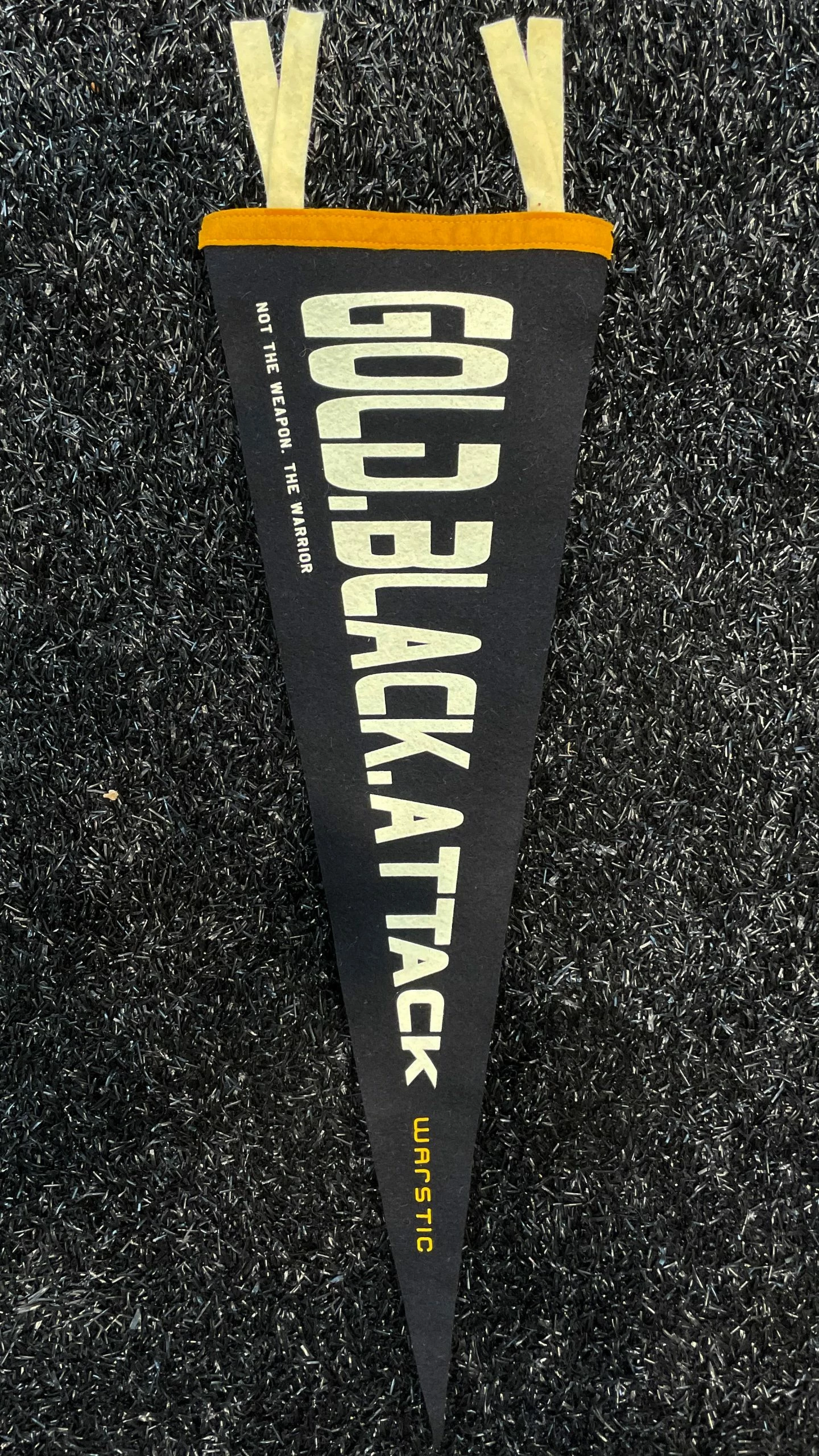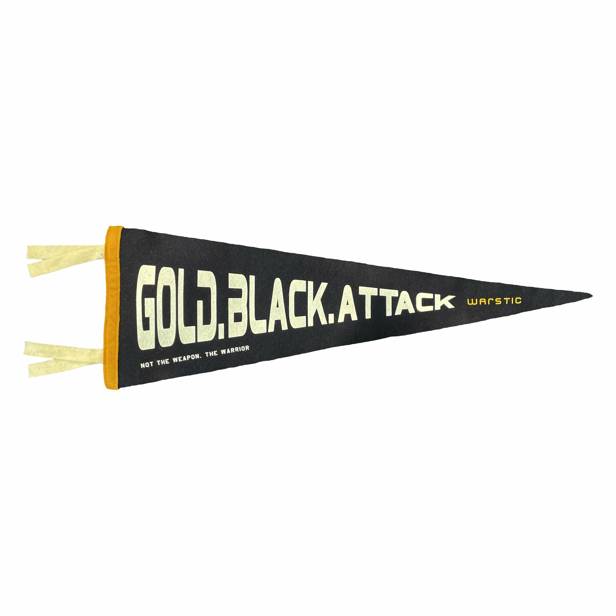 Made by Oxford Pennant in Buffalo, New York, the Gold Black Attack Pennant is an ode to our battle cry. Its modern block font has a space age feel, getting you pumped about what the future has in store as you gaze at it on your wall.