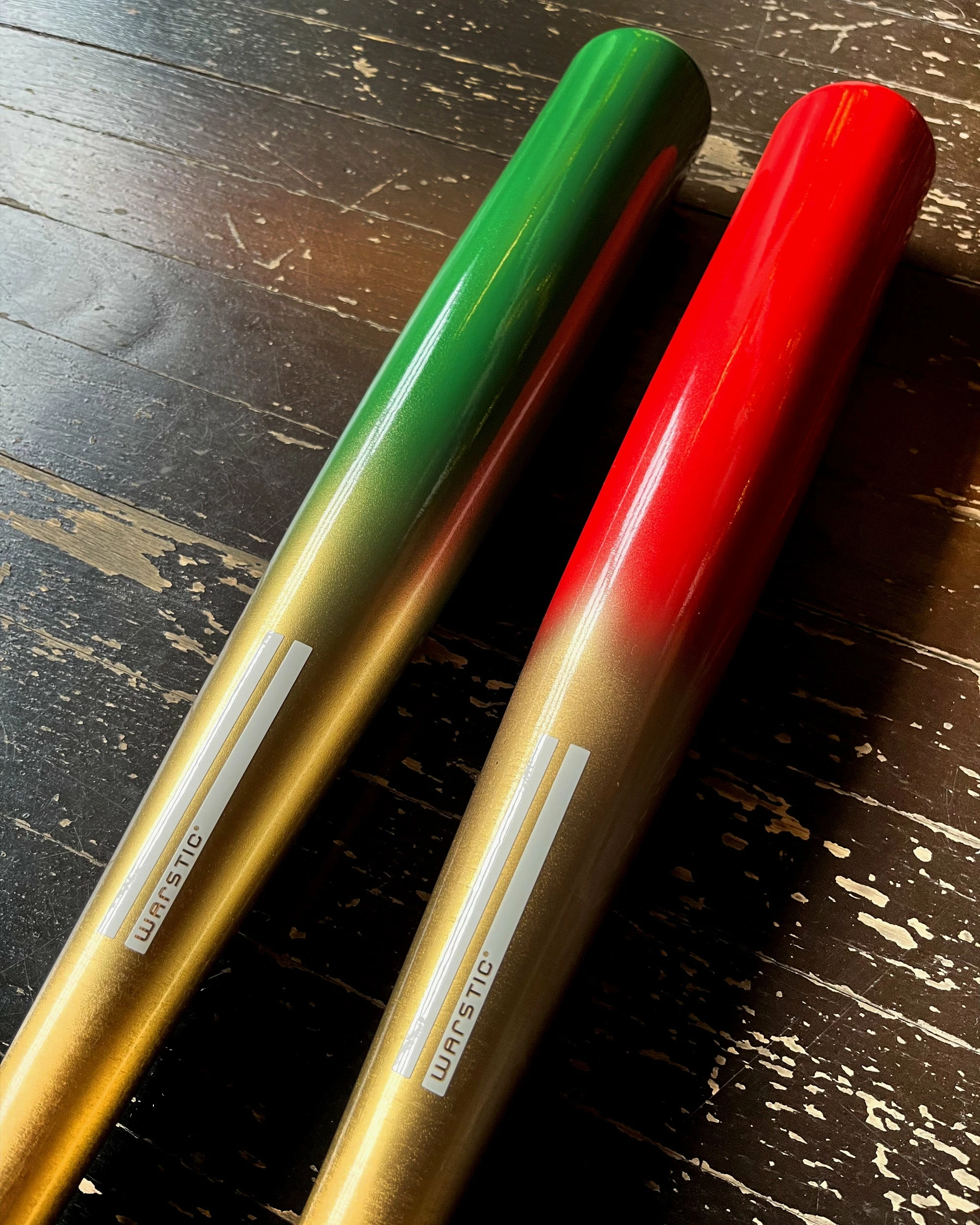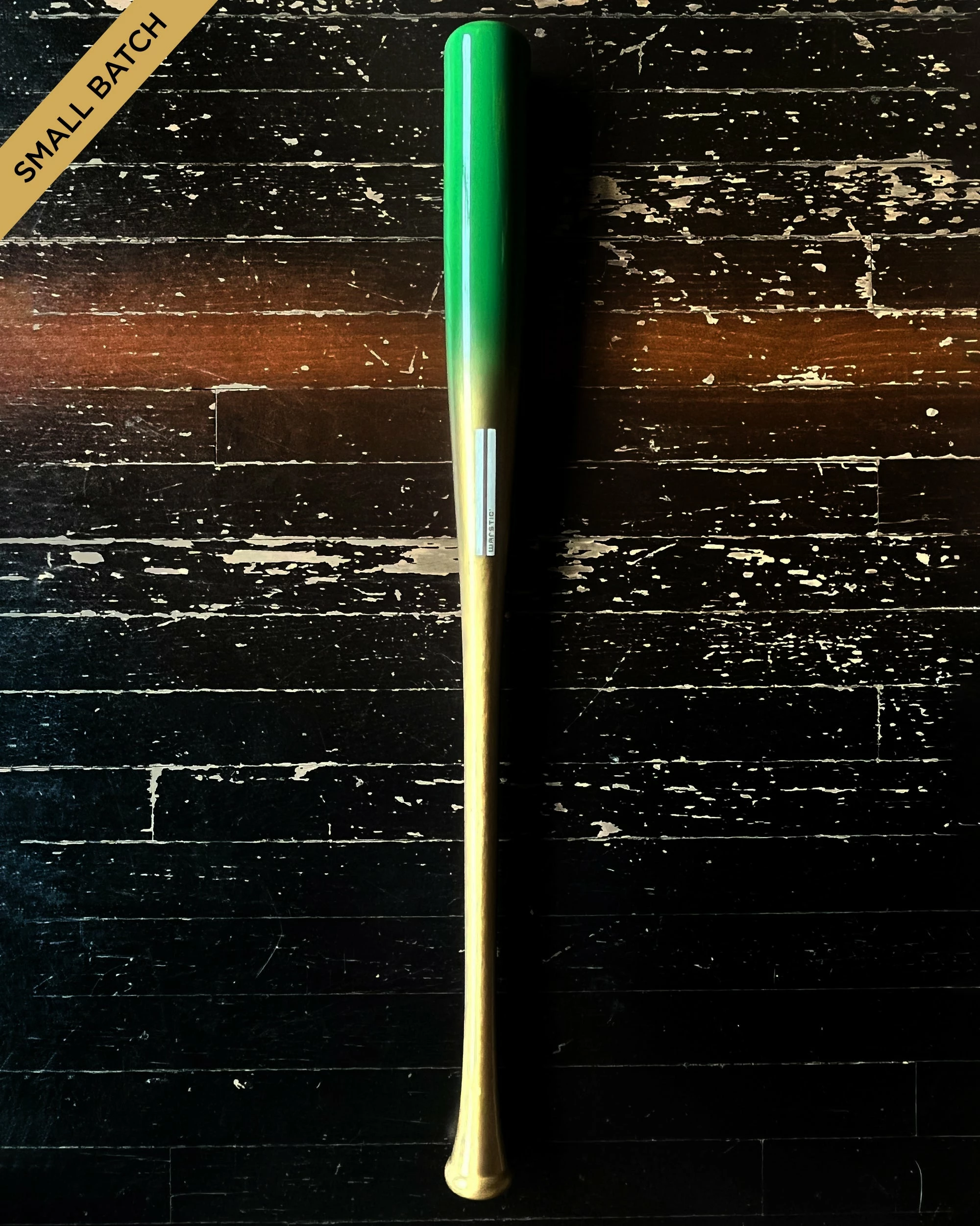 This Small Batch Evergreen WS271 Wood Bat shines with a true green barrel, metallic gold fade down the handle and is equipped with a candy coated high shine finish. Made with Ink Dot grade wood this bat may shine like a glass ornament but has the strength of the same wood our pros use. Order before 2pm 12/21 and select overnight shipping to receive in time for Christmas!Â