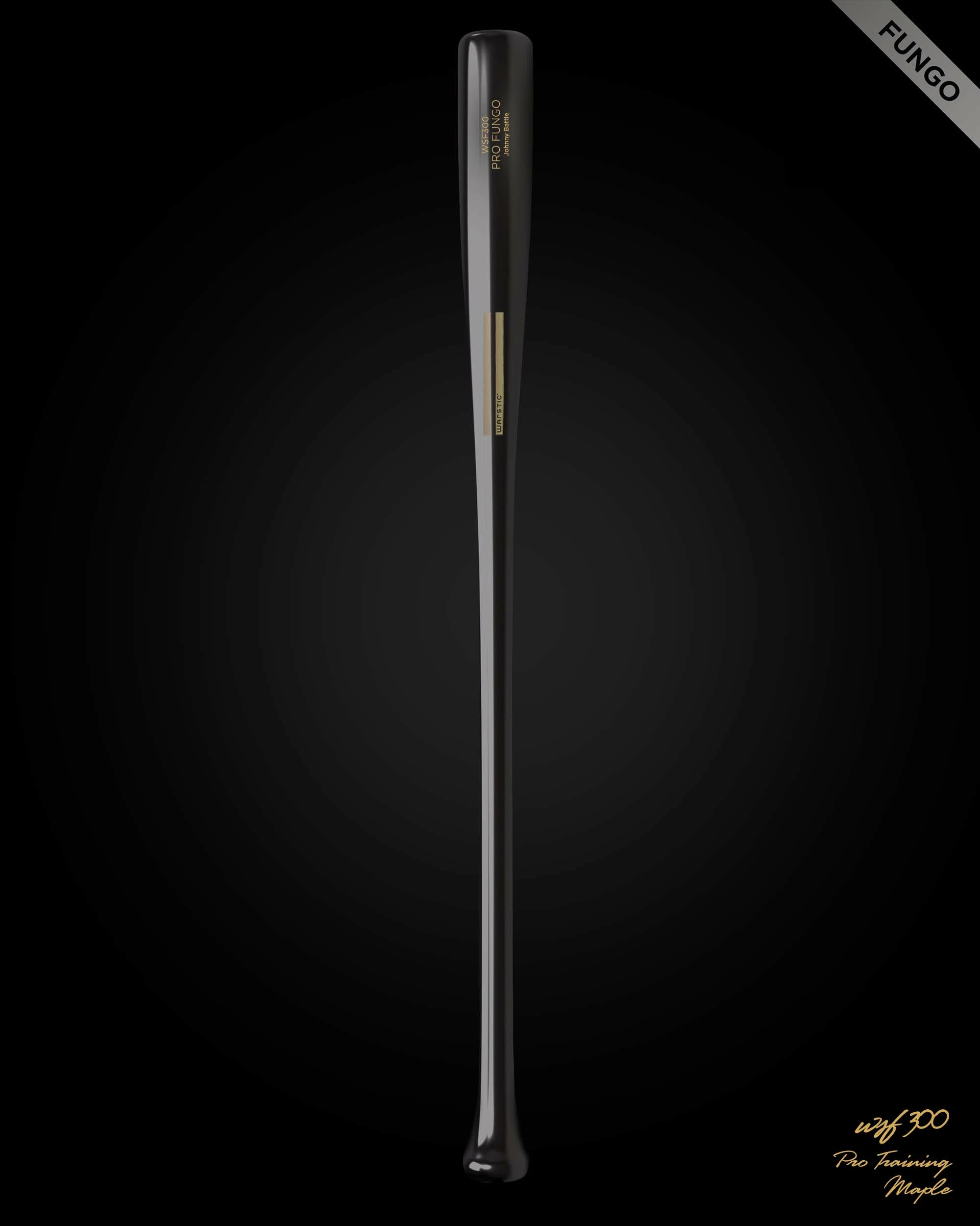 The WSF300 Maple Pro Stock Fungo Wood Bat by Warstic is lightweight and durable, with a classically-shaped profile and a cone knob. Available in black full dip stain and our gloss Pro Armor Finish for added durability, with gold engraving and Warstripe logo.